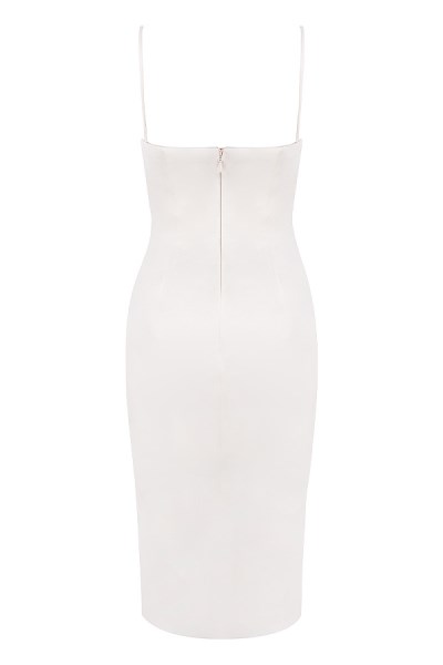This figure perfecting creation is one of our absolute favourites this season. In a rich lustrous satin with delicate ivory tones, 'Anja' is flattering for every skin tone. It has a fully corseted internal bodice to give incredible cinching properties and it sits prettily over the booty. The midi skirt keeps it ultra classy and the slight stretch means that 'Anja' is super comfortable to wear. No bra necessary under this but you can wear a strapless bra if you prefer. Wear yours with neutral heels.