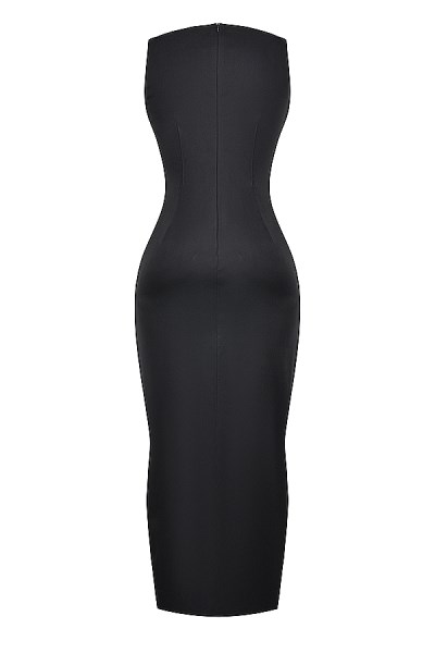 Our 'Filomena' dress has a sleek silhouette that exudes feminine glamour. It has a sleeveless cut that's made from luxurious matte satin jersey with a hint of stretch. 'Filomena' has a glossy feel and we adore how the smooth figure hugging fit accentuates your curves. The sexy side split reveals a flash of leg and looks the most elegant styled with tonal heels like 'Paris' in black.