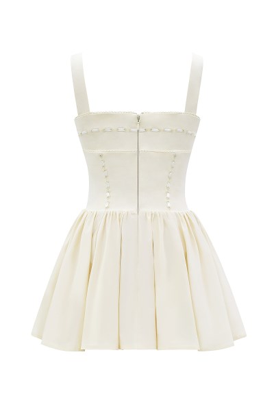 Our 'Honor' mini dress is as pretty as they come. The threaded ribbon detailing to the bust makes it feel so vintage. Made from our cotton-rich fabric in a flattering Buttermilk hue, it has a close fitting, corset inspired bodice. We especially love how the floaty skirt falls so elegantly from the waist.