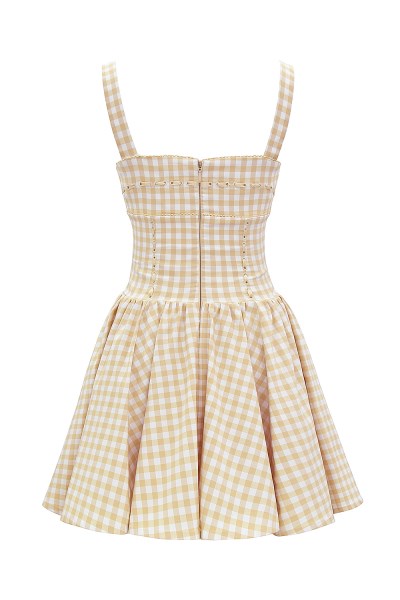 If you loved our 'Vivien' dress you'll love our mini version – meet 'Isadora'. The pretty gingerbread gingham and threaded ribbon detailing give this mini dress a cute vintage feel. Made from luxurious airy viscose, we adore how the corset inspired bodice makes this classic pattern feel so fresh.