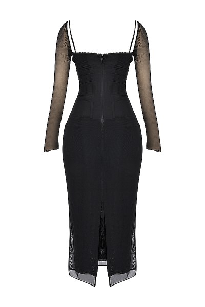 We've updated our favourite 'Nalini' dress and added long sleeves for the new season to create 'Katarina'. This version has a classic black hue that sets the tone for your most glamorous events and features a figure cinching boned bodice with the prettiest lace trim peeking from the neckline. The ultra feminine fit falls effortlessly to a flattering maxi length with a generous split to the back. It zips to the back for easy on. Wear yours with  our 'Paris' heels in black. The 'Regular Cup' option suits cup size A-C whilst the 'Bigger Cup' option suits cup size D-E.