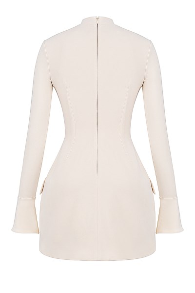 'Mahalia' is a beautifully constructed, form fitting stretch dress that really flatters the body. The sleek silhouette is set off by decorative flap pockets and the fluted cuffs add a little drama.