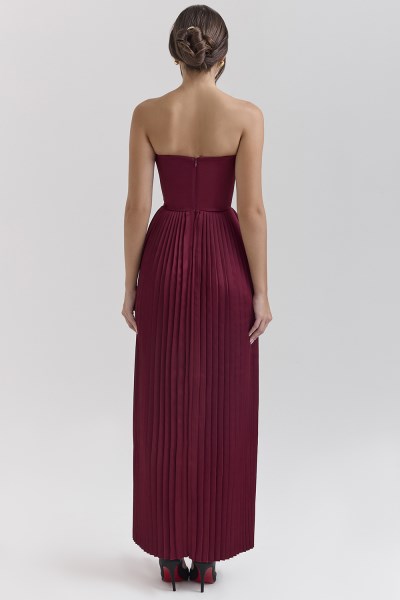 Presenting the captivating 'Marcella' Dress from our Enchanted Hour collection, where romance marries allure. This stunning piece in a rich berry hue exudes a dark, sexy vibe that is perfect for making a statement. Crafted from luxurious silky pleated georgette, the ethereal beauty of the 'Marcella' Dress creates a dreamy, romantic silhouette. The bust features elegant shell-shaped pleats that beautifully accentuate your décolletage, while the perfectly boned bodice cinches the waist for a flattering fit. The pleated maxi skirt flows effortlessly, ensuring that every step you take is nothing short of mesmerizing. Designed for ease, it zips at the back for a seamless fit. Style it with tonal heels and a delicate necklace for an enchanting ensemble. Available in both ‘Regular Cup’ for sizes A-C and ‘Bigger Cup’ for sizes D-E, the 'Marcella' Dress is tailored to enhance your natural beauty and ensure you feel confident and radiant. Embrace the magic of the evening in this irresistible dress. Stretch Factor: Some Stretch Designed For House Of CB