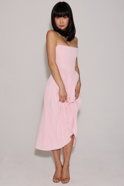 Marci Pink Pleated Midi Corset Dress