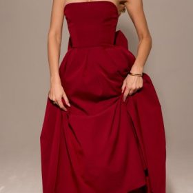 The 'Pandora' Berry strapless corseted midi dress is the epitome of timeless elegance. Crafted from the softest peached twill fabric, it feels as luxurious as it looks. The structured, boned bodice sculpts and cinches the waist, offering impeccable support and a flawless fit. Layers of tulle beneath the skirt create a beautifully voluminous silhouette, adding just the right amount of drama. The standout feature? A detachable oversized bow at the back, letting you switch between statement-making glamour and understated sophistication. Whether styled for a wedding, formal event, or evening soirée, the 'Pandora' dress is a showstopper that guarantees compliments with every wear. Made with Lyocell, which is a natural fibre made from regenerated cellulose. Known for its soft and breathable properties. WHERE TO WEAR:The 'Pandora' dress is perfect for weddings, formal events, romantic dinners, or festive celebrations. With its structured corset, voluminous tulle skirt, and detachable bow, it’s a showstopper for any occasion that calls for timeless elegance and a touch of drama. TEAM YOURS WITH:Pair the 'Pandora' dress with strappy heels in metallic gold or a neutral tone to complement its elegance. UNDERWEAR SOLUTION: