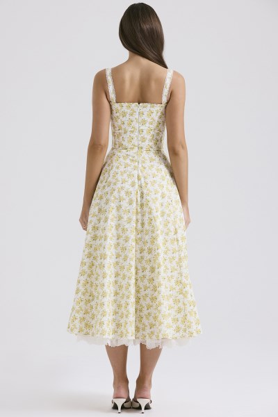 Our 'Rosalee' dress is cut from a stretch cotton-rich fabric that's bursting with elegant florals. It has a gathered bust with a corseted bodice and the skirt falls beautifully from the cinched waist. It has a pretty lace trim that peeks below the hemline. The soft tulle underskirt enhances the ultra feminine silhouette making 'Rosalee' the perfect Garden Party dress for warmer days. We love how this vintage style has pockets and as you would expect from HOCB, it's fully lined for comfort with a zip to the back for easy on. Wear yours with dainty mid heels like 'Lola' in white. The 'Regular Cup' option suits cup size A-C whilst the 'Bigger Cup option suits cup size D-E.