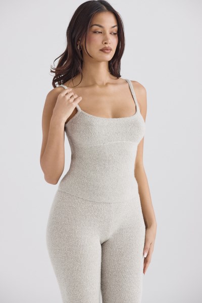 Our 'Rumi' vest top is ultra versatile to mix and match with our new lounge collection and comes in a neutral opal hue. Cut from our soft and luxurious stretch ribbed knit for a figure hugging fit, 'Rumi' has delicate straps and the underbust seam defines the shape. Wear yours with our 'Sydney' leggings and 'Pascal' jacket for comfy chic dressing this season. We recommend folding our knitwear as it will stretch on a hanger.