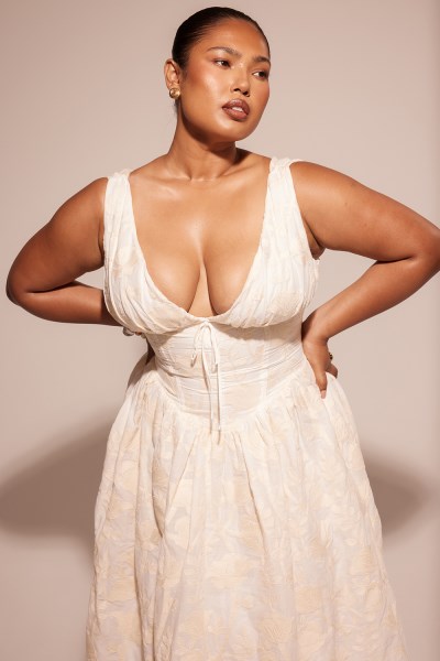 $89.70FREE DELIVERY ON YOUR ORDER Description Channeling understated elegance, 'Emmelina' is an effortless wear-anywhere style in a delicate fabric. The floral embroidered ramie cotton is delicately dainty and light and fresh to wear for warmer months. The plunge neckline perfectly mirrors the open back and the bodice is corseted to…