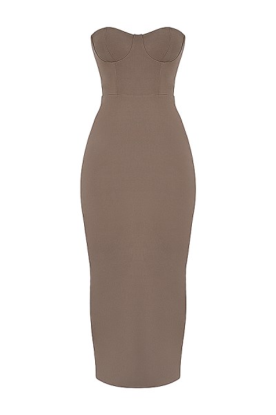 $85.50FREE DELIVERY ON YOUR ORDER Description Elegant, glamorous and a show stopping style you'll wear for years to come. Our 'Lucia' maxi dress is cut from our high tension sculpting fabric that flatters and hugs your curves in a dreamy taupe hue. It features an elegant strapless neckline with underwired…