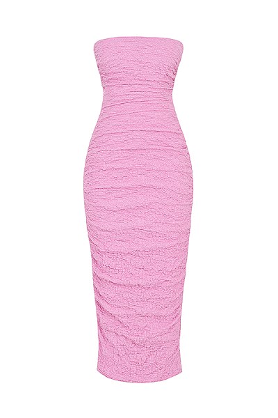 FREE DELIVERY ON YOUR ORDER Description 'Tana' is designed to sculpt and accentuate in a pretty pink strapless silhouette. Our new crinkled fabric is ultra flattering and we love how the concealed boning to the bodice adds structure to the shape to cinch the waist. Tana' fits close to the body…