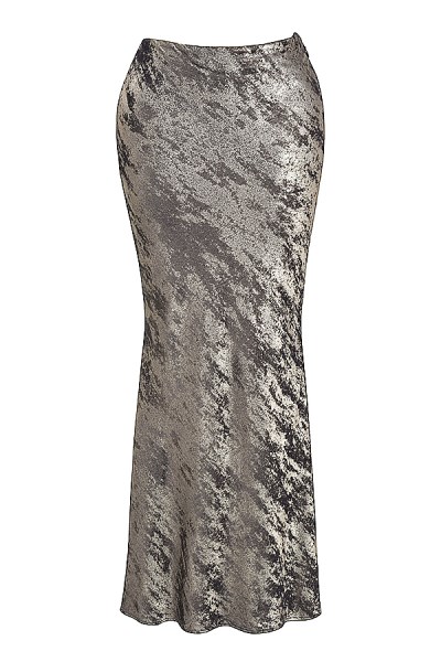 $31.50FREE DELIVERY ON YOUR ORDER Description We love the simple cut of our 'Clara' midi skirt that is beautifully cut on the bias and highlights the metallic velvet satin drape. 'Clara' sits just below the natural waistline and flows effortlessly across the body and falls to a flattering floaty midi…