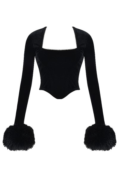 $44.70FREE DELIVERY ON YOUR ORDER Description 'Catriona' is made from an ultra luxurious stretch velvet so it feels rich and sumptuously soft. The faux fur cuffs adds festive drama and the incredibly supportive boning perfectly cinches your waist. Wear 'Catriona' with tailored trousers or denim for that casual glam vibe. WHERE TO…
