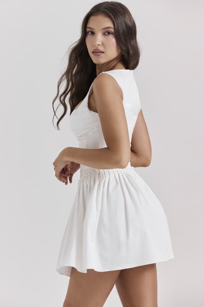 'Cupid' is just so romantically feminine and your perfect date night choice. We love how the pretty corseted bodice flatters your bust and cinches the waist. Cut from stretch twill, this gorgeous creation is stunning in fresh, crisp white. The skirt is layered with the softest tulle for the perfect shape. Cupid zips to the back for easy on and looks the prettiest paired with our 'Lola' high heels in white. The 'Regular Cup' option suits cup size A-C whilst the 'Bigger Cup' option suits cup size D-E. Taller girls, we heard you and this is available in two lengths, our regular mini length and 2 inches / 5cm longer. Regular length: Approx 83cm and Longer: Approx 88cm. WHERE TO WEAR: