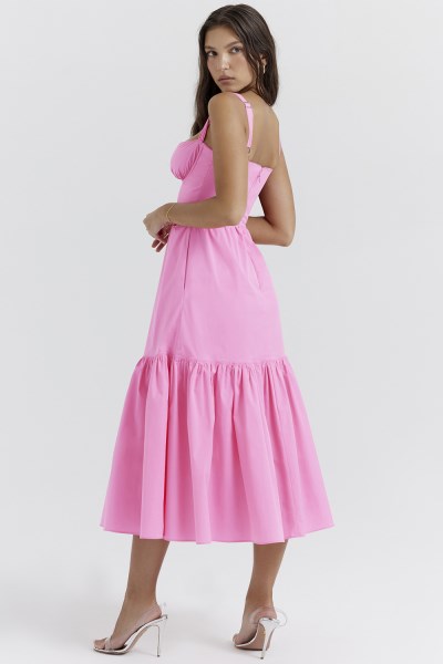 Summer feels in our 'Elia' midi dress. Cut from stretch cotton in a gorgeous French Pink hue, 'Elia' is ultra feminine and has a pretty sweetheart neckline with underwired cups for ultimate support and bust flattering cleavage. The bodice is fitted with our signature corsetry boning to cinch the waist and the thing we love the most is that 'Elia' has pockets.