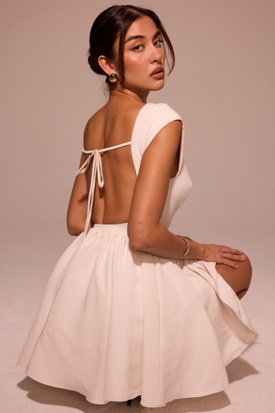 We’d recommend boob tape or a backless bra. SPECIFICATIONS:Main – Moire SatinSkirt Lining – Heavy Rayon: 100% Viscose Stretch Factor: Little Stretch Designed For House Of CB