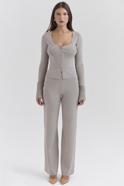 'Aspen' grey cashmere jacket and point toe boots. UNDERWEAR SOLUTION: