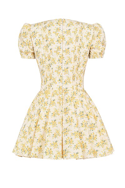 Imani Buttercup Vintage Floral Print Pleated Cotton Mini Dress