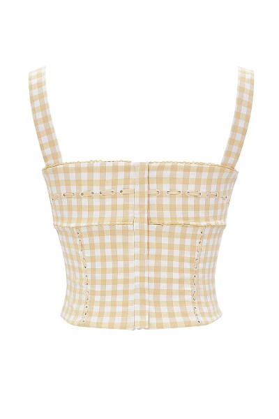In a gorgeous gingerbread gingham, 'Lottie' is the prettiest corset that you're going to want to team your favourite jeans with. It's made from a luxurious airy viscose and the fitted, boned bodice cinches your waist. We adore the delicate contrast ribbon threaded throughout. 'Lottie' is easily our prettiest corset in this collection. It zips to the back for easy on.'Lottie' is made from luxurious airy viscose. The fitted, boned bodice cinches your waist and we adore the delicate contrast ribbon threaded throughout. 'Lottie' is easily our prettiest corset in this collection. It zips to the back for easy on.