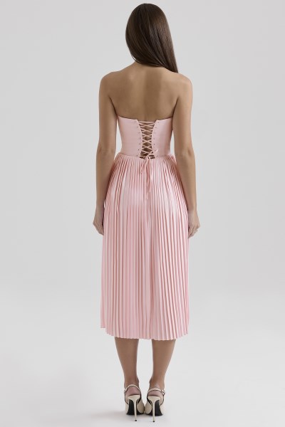 Marci Pink Pleated Midi Corset Dress