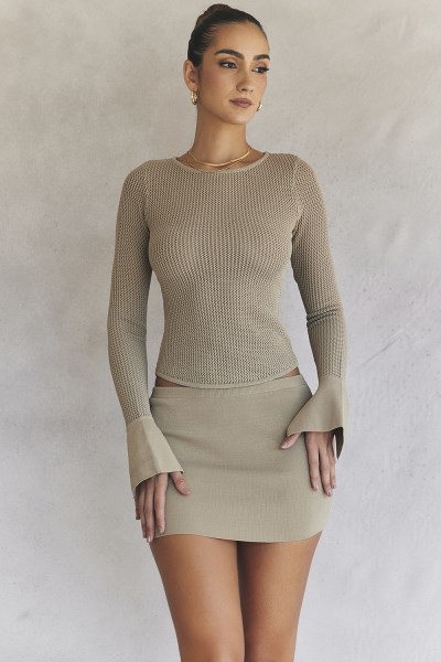 Mariella Taupe Knit Mini Skirt