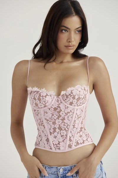 'Mila' is cut from a romantic rose lace, woven from delicate flowers and trimmed with the softest satin. It features a sweetheart neckline with lightly padded underwired cups for gentle lift and support and a longer length waist nipping corset that's ultra flattering. Adjust the satin straps to ensure the perfect fit. It has a zip to the back for easy on and is fully lined in our special power mesh to enhance the close fit from within. Wear yours with denim like our 'Yara' vintage fit jeans. The 'Regular Cup' option suits cup size A-C whilst the 'Bigger Cup' option suits cup size D-E. As corsets are designed to fit snugly, we recommend sizing up if you are between sizes.