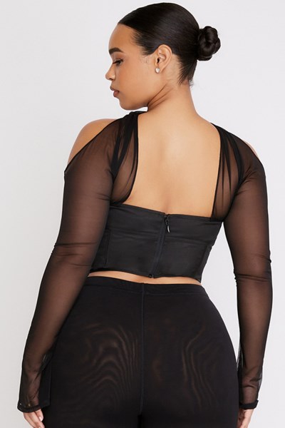 What could be more sexy than the 'Mina' corset? It oozes sexiness and slots perfectly into your most glamorous party season favourites. The bodice is cut from a stretch black cotton and features our incredible corsetry boning to really cinch the waist and the underwired cups are lightly padded to enhance the bust for the most amazing cleavage. It has a longline silhouette to sit just below the waistline with hook and eye detailing to the front. The sleeves are cut from the softest stretch mesh and we love how they extend around the back of the shoulders into a halter neck to the front. It has a zip to the back fo easy on. Wear yours with our 'Lia' black latex leggings to accentuate the sexy vibe. The 'Regular Cup' option suits cup size A-C whilst the 'Bigger Cup' option suits cup size D-E. As corsets are designed to fit snugly, we recommend sizing up if you are between sizes.