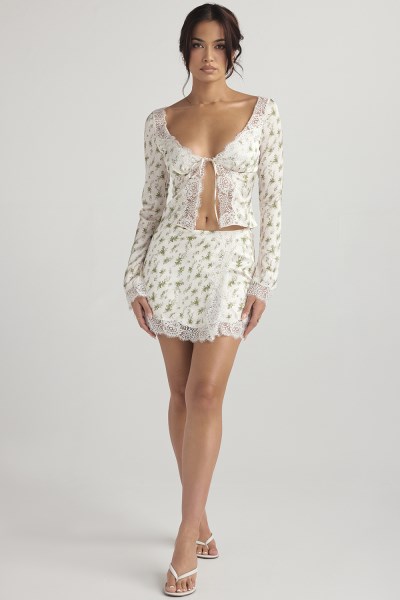 'Noemie' is designed in our fresh new floral Garden Print that we're loving for the summer season. Cut from our soft silky satin and trimmed with delicate lace, 'Noemie' sits low on the natural waist and has a close fit at the hips before falling to a slight a-line silhouette. The split to the left side parts sexily as you walk and it's fully lined for a smooth finish. Wear yours with our 'Clarissa' top for an effortlessly elegant match.