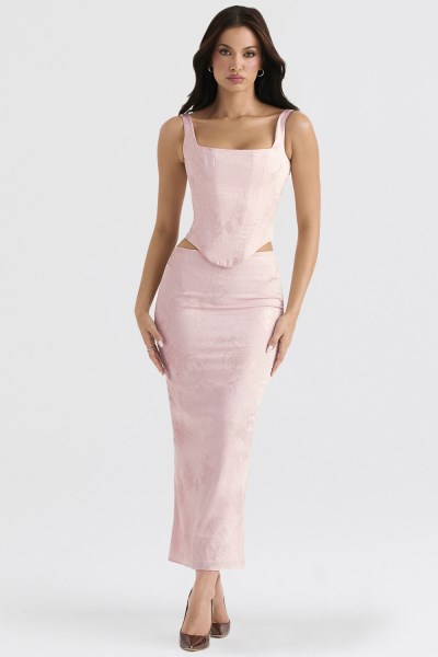 'Rafa' is beautifully crafted from our ultra luxe metallic floral satin in a pretty pink hue that we love paired with trousers or denim. Inspired by traditional corsets, 'Rafa' has a longline silhouette that dips below the natural waistline with a bust flattering square neckline and features our incredible corsetry boning to really cinch the figure in for an ultra feminine hourglass shape. The bodice is fully lined for comfort and the bust has an inner layer of our special power mesh to lift and shape from within for the ultimate cleavage so there's no need to wear a bra. It zip's up the back for easy on and we love this paired with our 'Luisette' skirt in pink floral for the perfect match. As corsets are designed to fit snugly, we recommend sizing up if you are between sizes.