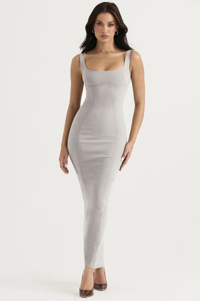 'Rea' is designed with figure defining casing that flatters the bust and gives this simple silhouette a feminine touch. Cut from our high tension fabric for a sculpting fit and blended with plenty of stretch to hug your curves in a bodycon style, 'Rea' has an ankle grazing maxi length and the split to the back ensures easy movement. It has a zip to the back for easy on and we love this paired with our 'Paris' heels in patent black.