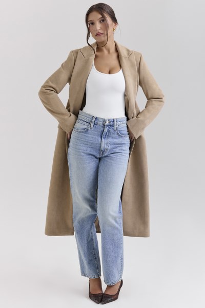 Our sleek and stylish 'Remi' coat is impeccably tailored from a soft heavyweight felted twill and is a masterclass in sleek styling to elevate your outerwear game. The longline peak lapels and sharply tailored waist create a flattering silhouette, while the single-breasted cut with an invisible button offers a streamlined finish. Flap pockets add both function and flair, making it as practical as it is polished. Inside, a silky lining ensures comfort, making every wear feel luxurious. Whether you're heading to the office or out for a night on the town, the ‘Remi’ is your ultimate statement piece. Style it over a fitted turtleneck and high-waisted trousers for a chic monochrome look, or drape it over a cosy knit and tailored jeans for a relaxed weekend vibe. WHERE TO WEAR: