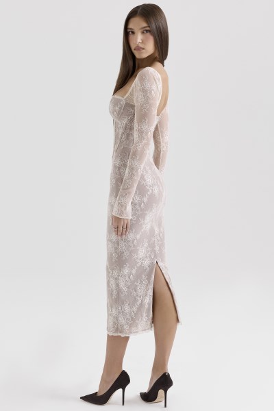 Saisha Ivory Lace Long Sleeve Midi Dress
