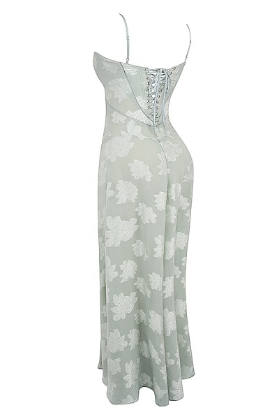 Seren Pistachio Floral Lace Back Maxi Dress