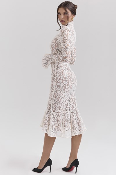 Sophia Vintage Ivory Lace Fitted Midi Dress