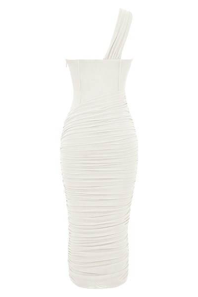 Valentina Ivory Asymmetric Cutout Midi Dress